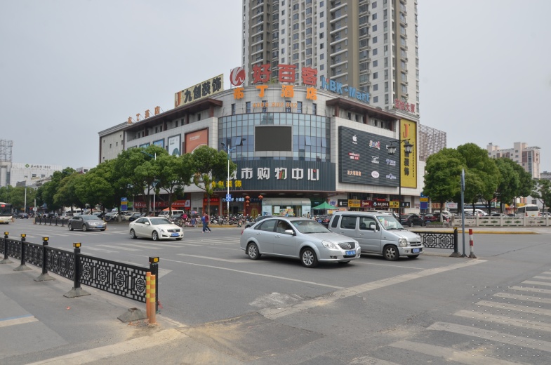 东吴南路与广建路交汇处好百客城市购物中心墙面大牌